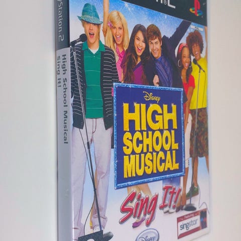 Selger High School Musical Sing It! til PS2. Inneholder manual, cover og CD.
