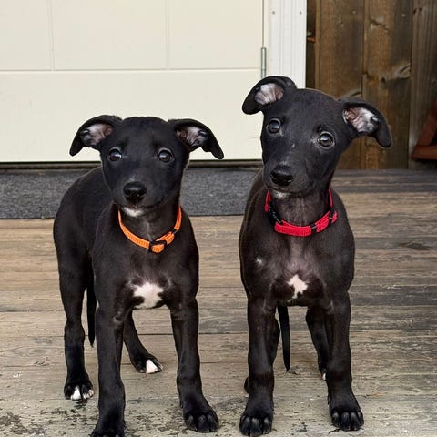 Så får de med seg en valpepakke med noe stæsj oppi, noe fra mammaen også