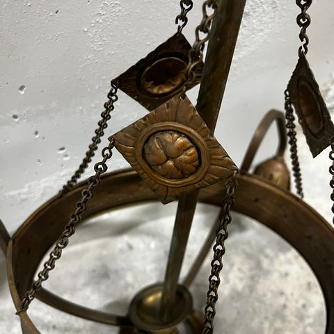 Selger en taklampe for min mor. Vet min mor fikk denne på tidlig 60 tallet som gave av en tante. Den hang i taket frem til 2020. Denne kan IKKE sendes, må hentes. Kan mot ett tillegg i prisen være behjelpelig med overlevering mellom Vestby og Rosenholm. Kom med bud