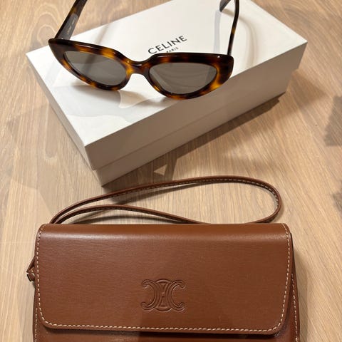 Veldig pent brukt Celine solbriller selges☺️Utrolig god kvalitet og sitter godt på. Mørkt glass med tortoise farge. Eske og etui følger med.