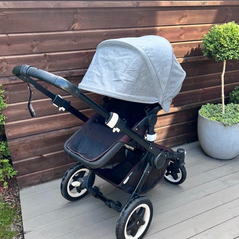Vogn fra 2017 selges brukt, noen merker men ellers fint brukt. Ikke opplevd knirking o.l., brukt i barnehage siste årene.
