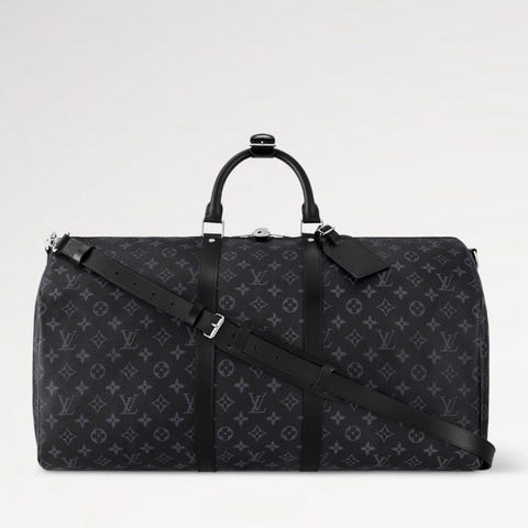 This iconic Keepall 45 Bandoulière is fashioned in our new iconic black and grey Monogram Eclipse canvas. Since 1930, the Keepall duffle has journeyed alongside generations of elegant globetrotters. This version – with comfortable-to-hold leather handles, a strap for casual cross-body wear and a gleaming padlock – holds all the essentials for an overnight jaunt.