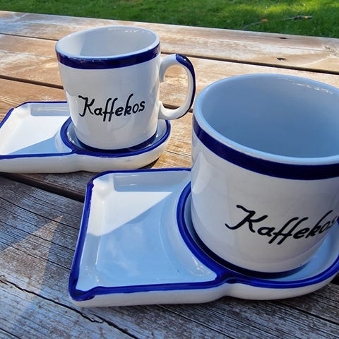 Morsom tesil fra Qdo. Den skal henge over koppen. Diameter 14cm på "lokket". Pent brukt.
