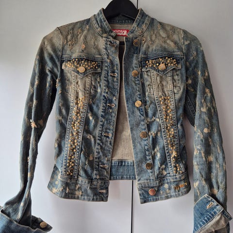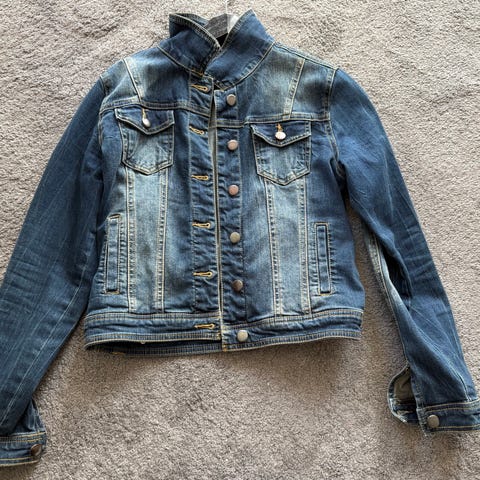 Pent og meget lite brukt jakke i mørk dongeri selges.