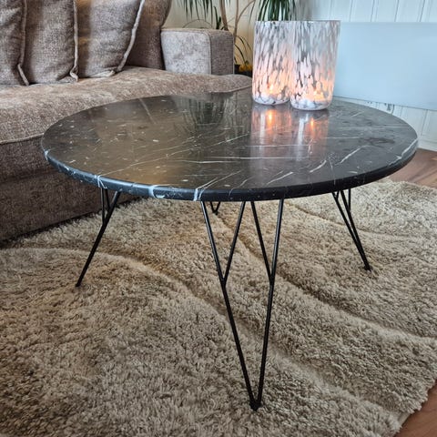 Sofabord fra Skeidar. Svart marmor. Kostet rundt 10.000 kr.