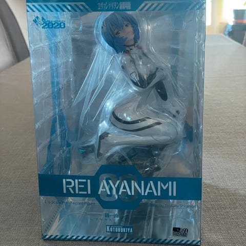 Selger en Rei Ayanami figur fra neon genesis evangelion.