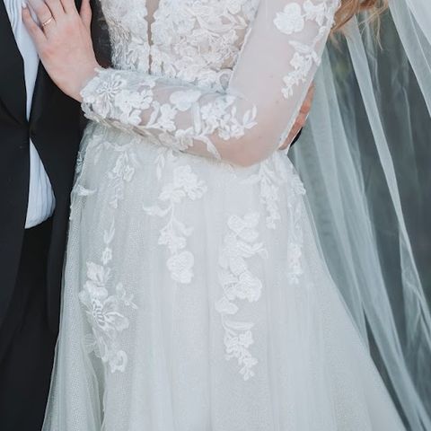Ettersom datoen til bryllupet vårt ble flyttet litt og fordi jeg ble usikker på kjolen, så selger jeg denne nå.