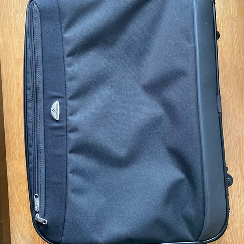 Stor utvidbar Samsonite koffert brukt på 2 flyturer. Lengde 72 cm. Bredde 52cm og 29-34 cm høyde. Kofferten har mange praktiske rom. Har ingen skader, men har fått sorte merker noen plasser etter behandling på transportbånd.