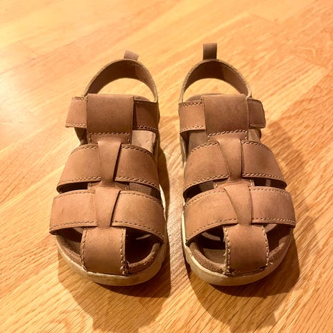 Pent brukte sandaler som også kan brukes som tøfler/innesko (for eksempel i barnehagen).