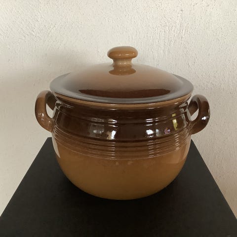 Syltekrukke fra Höganäs, Sverige. Klassisk solide krukke i brunglasert keramikk. Stor krukke, 4 liter, H: 21 cm.
