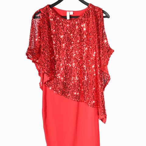 Kjolen har ikke merkelapp, men den er av syntetisk materiale med god strech. Kjolen er ubrukt. Den sitter pent på.