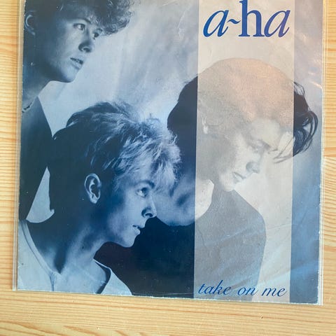 "Take on me" 7" 1985. Tysk pressing. Plate VG+ / Cover VG (litt slitent cover, men det er helt) - 40 kr