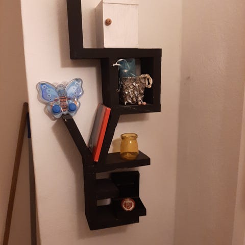 Til barnerommet - Søt hylle med skapdør selges kr 150,- Ny/ubrukt - med katteansikt til skapdør. Selve hyllen er ca. 17 x 17 cm. (Nypris kr 349,-).
