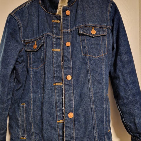 Tilstand? Pent brukt. Naturlig fade og distressing. Beltet mangler. Litt ulikt snap i knappene. Forbehold om nupper/løse tråder etc. Pris justert.