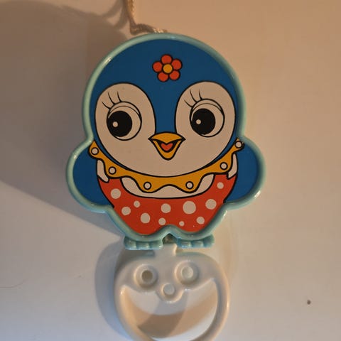 En liten spilledåse musikkvogn. I plast med dyremotiver. Laget i Kina. Original eske inkludert.
