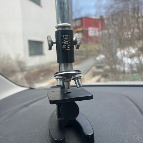 Selger ett eldre Meopta mikroskop.