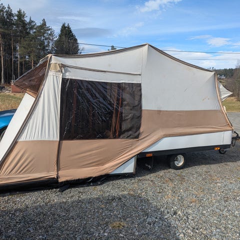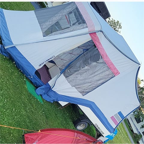 Vi kjøpte det som reserve til vår 2004 modell Combi-Camp Venezia, da den så lik ut i fra bildene. Men vi valgte å sy skaden vi hadde på vår originale, og droppet bytte da skaden ikke var direkte eksponert for regn.