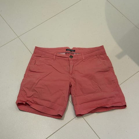 Rød shorts fra Tommy Hilfiger strl M, nesten ikke brukt. Stoff og passform minner om en chino bukse.