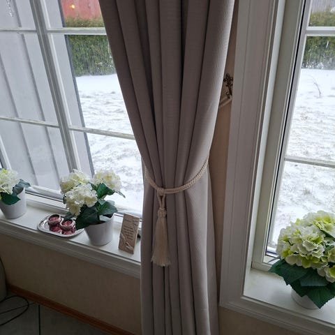 Gardin i en kraftig polyesterkvalitet som gjør at gardinen henger pent. Forskjellige strukturer i stoffet gir spill i gardinen. Gardinen har påsydd multifunksjonsbånd som gir mange opphengsmuligheter. Velg mellom å benytte de skjulte hempene på multibåndet som gir jevne og fine folder eller løpegangen.