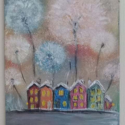 Akrylmaleri " love in the rain" str 37 x 46 cm. Se mine andre annonser
