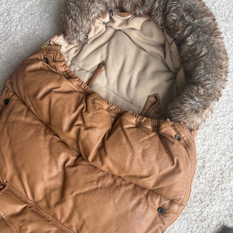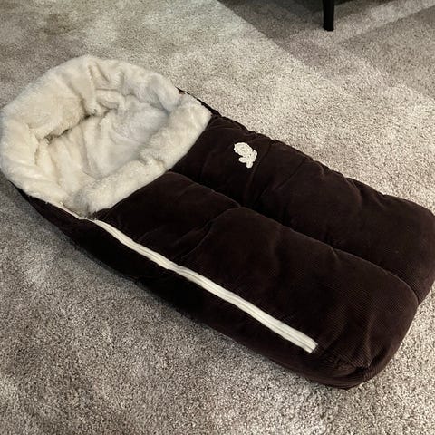 Retro vognpose i cordfløyel. Passer best til baby. Posen har noen småmerker i stoffet (se bilde), men er ellers i fin stand.