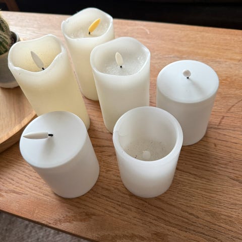 De lyser svært sterkt på deres sterkeste belysning. Høyst estetisk flott preg. De flotteste jeg har bemerket meg ut av alle jeg har kommet over av led kubbelys. Da de ikke er laget av voks vil de heller ikke bli loete (støv etc fester seg ikke til de). De er dermed sagt svært enkle å tørke av. Er man glad i det estetisk hvite og rene, forenklede så vil man elske disse.