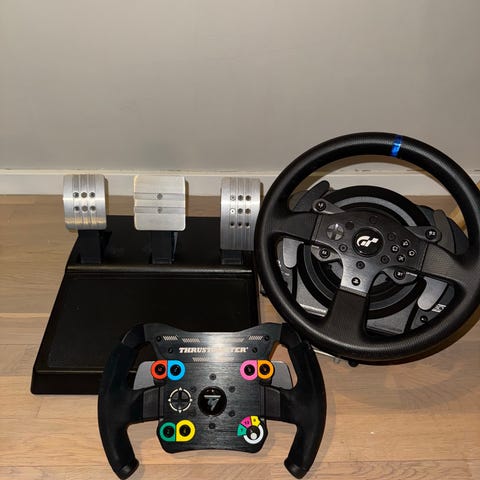 Selger Thrustmaster T818 når jeg ikke fikk den kompitabel med PS5 med drivehub. Eneste bruken er at jeg koblet den til drivehub og oppdatert til seneste firmware, plasten sitter fortsatt på skjermen på rattet. Er med quick release feste til ratt og bordfeste.