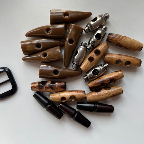 Masse gamle knapper og gamle oppheng for gardiner noe i tinn av knappene selges 500 kr.
