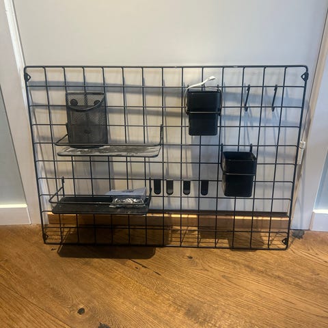 Oppbevaringsbokser i forskjellige størrelser. Kjøpt på Jula. Kan kjøpe til skinne og henge de på.