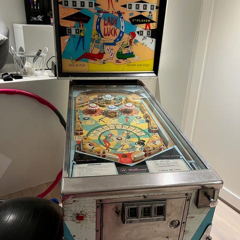 Pent backglass uten avflassing til flipperspillet Six Million Dollar Man. Kan evnt byttes mot glasset til flipperspill Star Pool fra 1974.