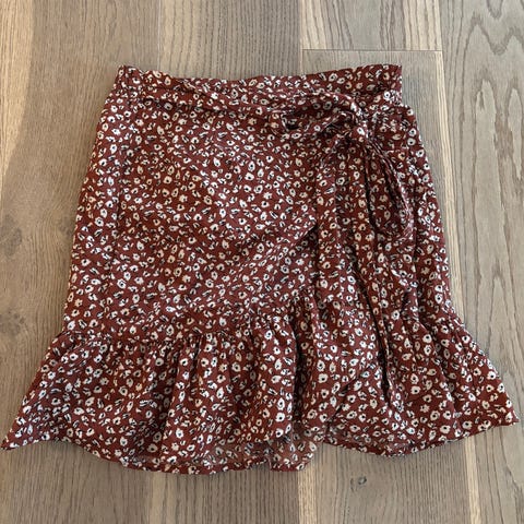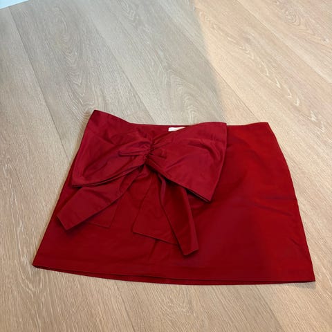Fint rødt skjørt fra Shein Curve med justerbar snøring. Str 0XL som normalt tilsvarer 44, men dette er litt lite i størrelsen, ca str. 42.