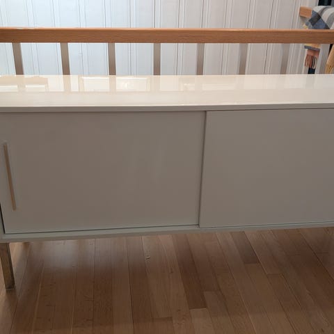 Hvit tv-benk m/skyvedører, 30x100x51 - må hentes