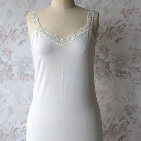 Myk, kremhvit topp/singlet i blonde.