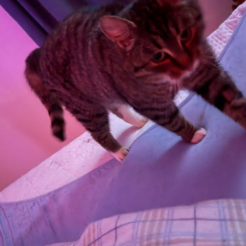 Hun søker nærhet på en stille og respektfull måte, følger deg gjerne fra rom til rom, og legger seg ofte ved fotenden av sengen for å være nær – uten å trenge seg på.