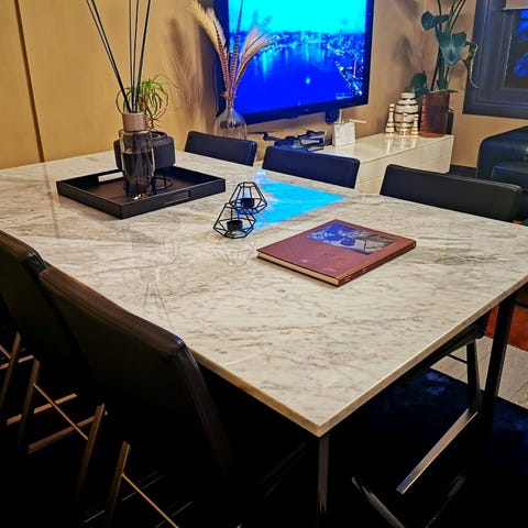 Noe merker fra glass på toppen. Men det er ikke til å unngå med naturmaterialet som marmor