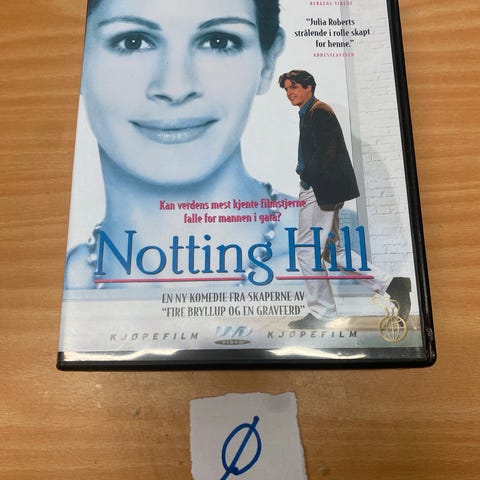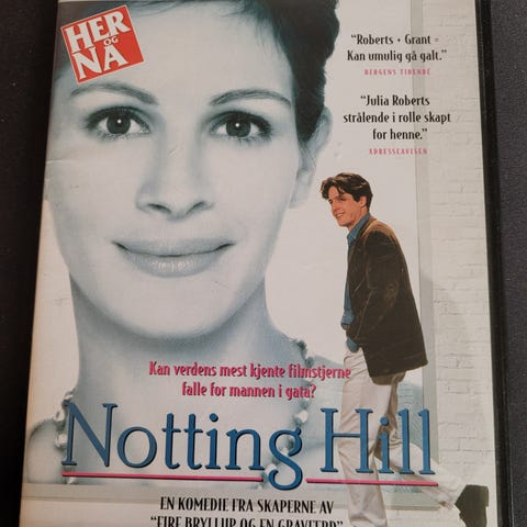 Notting Hill DVD Film med skuespillere Julia Roberts og Hugh Grant. Filmen er en romantisk komedie som følger en bokhandlers møte med en berømt skuespillerinne. DVD-formatet gir enkel avspilling på de fleste DVD-spillere.
