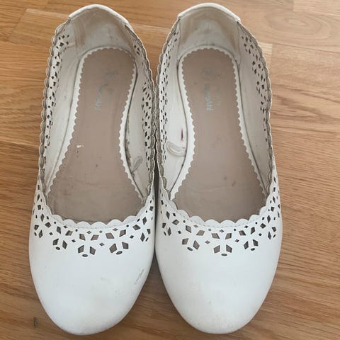 Ubrukte Camper twins kids ballerinas / småsko / ballerinasko / sommersko / skinnsko størrelse 36 selges. Hvite med blomster/mønster. Modellnavn Sella Houston cross cross. Finner ikke i norsk nettbutikk, skoen koster 63 euro på tilbud her (24. Juli), opprinnelig pris 90 euro https://www.rahostore.it/en/kids-shoes-sneakers/camper-kids/sella-houston-criss-cross-kito-abeja-007/38212