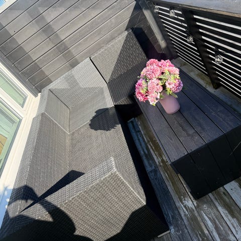 Mangler glassplata til bord, men modulen kan brukes likevel til sofaen