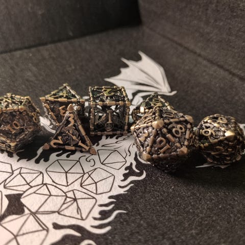 Her selger jeg 2 sett med virkelig vakre Dungeons and dragons terninger med pokemontema. Kjøper du disse kan jeg garantere god kvalitet for pengene.