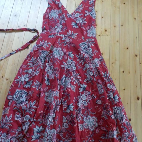 Pen sort-hvit bomullskjole fra Monsoon med paisleymønster. Foret med tynt bomullsstoff. Står str 38, men vil si den er str 36, kanskje ned mot 34. Aldri brukt.