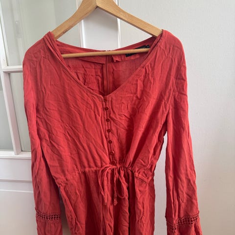 Monsoon solkjole rød ca str 36 - ubrukt, men omsydd
