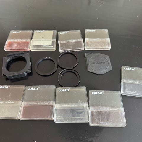 Cokin Filtersystem for farge-effekter/korreksjoner. Fungerer ved at polariseringsfilter roteres bak et fargefilter. På den måten kan man oppnå et vell av ulike farge-effekter, regulere fargetone eller justere kontrast ved sort-hvitt-fotografering. Holder med skrufatning 62 mm for montasje foran objektivet. (Andre adapterringer er tilgjengelige fra Cokin.) Pakken inneholder roterbart pol-filter, pola red (161) pola blue (162), pola red-green (170), pola red-blue (171), pola purple-orange (172), samt ekstra filtre blue 20 og red 003. For fotografen som vil gjøre bildet in situ og ikke i etterarbeidet. Systemet er kjøpt ca. 1992 og er praktisk talt ubrukt. Produsert i Frankrike. Selges samlet.