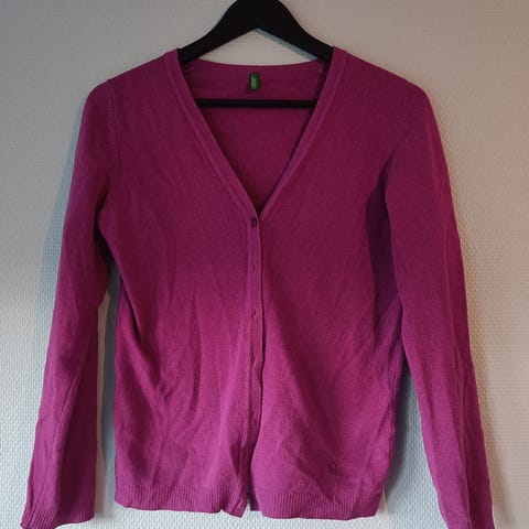 Krembeige cardigan fra Benetton i 100% lammeull, står str S, men er som en XS . Lite brukt. Eldre modell, som er av bedre kvalitet og nupper vesentlig mindre enn de som selges i dag. Liten slitasje nederst i kanten på baksiden (se bilder), kan lett fikses med noen få håndsting.
