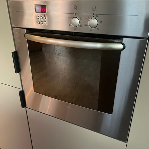Vi pusser opp og bytter ut hvitevarene. Ovnen fungerer som den skal, men mangler et feste (tror jeg) til innerste glassplate i døren, så jeg får ikke til å feste den. Alr fungerer ellers som det skal. Ovnen selges derfor billig.