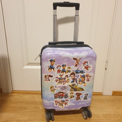 Koffert til barn fra Samsonite. Blitt for liten til min gutt, men mye god bruk igjen. Fungerer helt fint, og ser nesten ny ut. Pittelitt slitasje på baksiden (se bilde), og mangler en liten del, men ikke noe som går ut over funksjon. Ser så god som ny ut inni. Ren og pen. Kostet 800-900 kr ny.