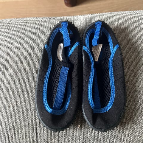 Disse badeskoene er designet for barn og har en unisex stil. De er laget i en kombinasjon av materialer som gir god komfort og beskyttelse ved bruk i vann. Skoene har en grønn farge med svarte detaljer. De er ideelle for aktiviteter ved stranden eller bassenget.