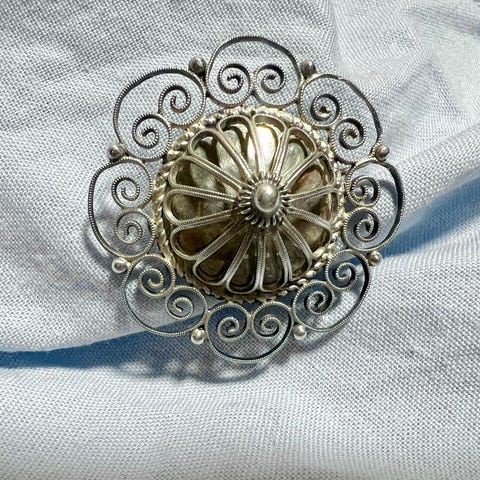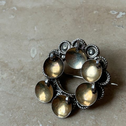 Sølje 2,5 cm oksidert sølv gullbelagte blader - hentes Haugesund/Bergen/sendes