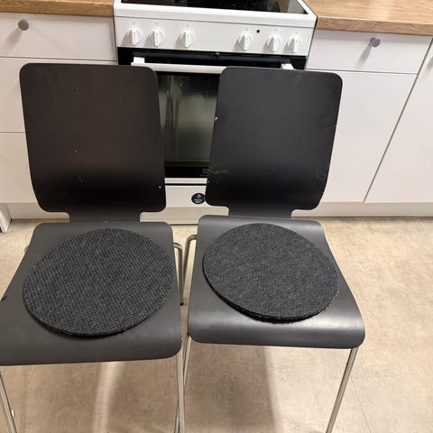 Stolene er litt forskjellige, vi har brukt de som kontorstoler til studenter som har leid hybel hos oss.
