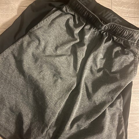 Godt brukt Nikeshorts selges. Praktisk glidelåslomme på baksiden og har både strikk og snøring i livet. Den er fortsatt veldig fin i stoffet, men refleksdetaljene er slitt. Fin til løpeshorts og annen trening.