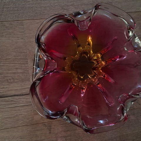 Josef Hospodka, Czribska, Czech glass, polsk, bohemsk, tjekkisk, sommerso, fargerikt, glasskunst, samleobjekt, glassfat, glassbolle, vintage, retro, fruktfat, dekor, rosa glassfat, dekorasjon, pynt, interiør, kunst